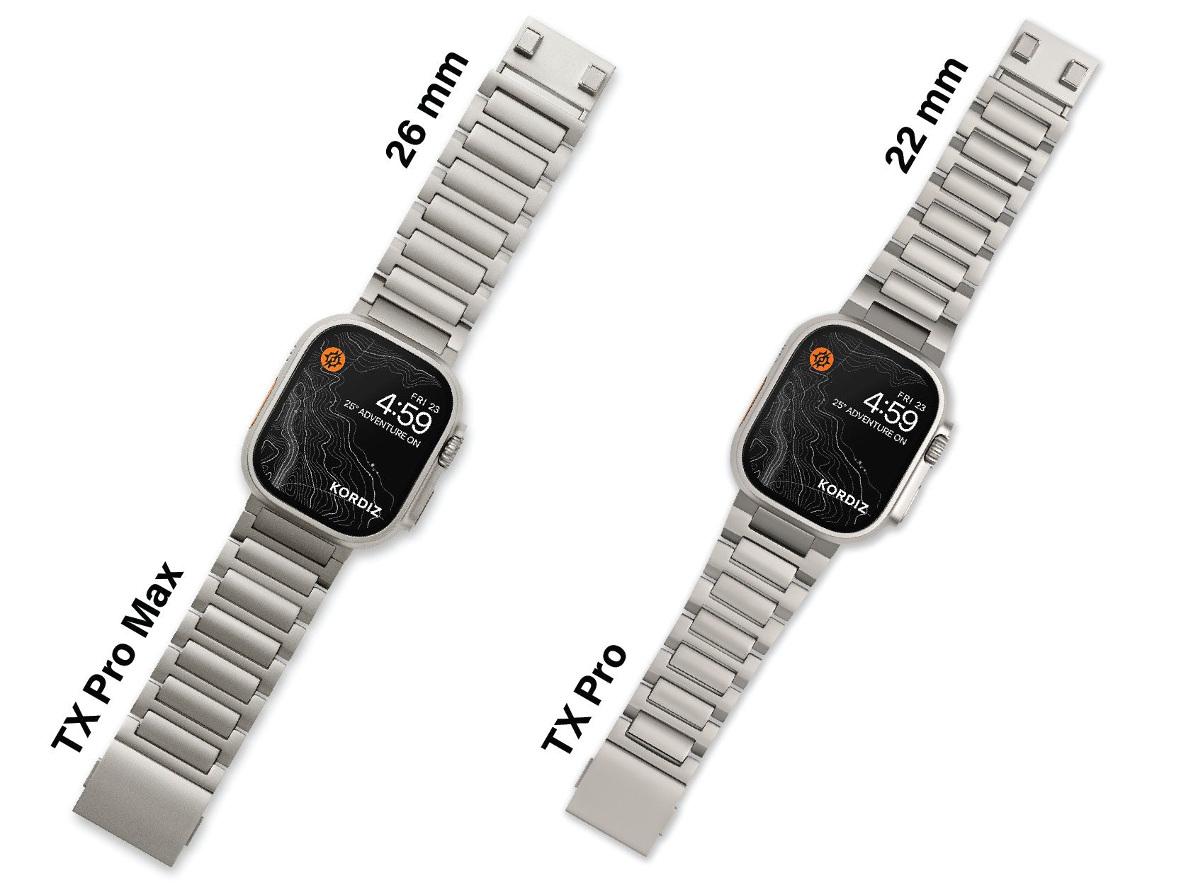 Available in two distinct band widths: 22mm for a sleek, understated look and 26mm (Max) for a bolder statement.